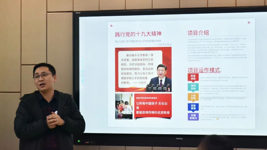 廖杞南理事長(zhǎng)從招募選拔、培訓(xùn)支持、入校安置、項(xiàng)目管理、長(zhǎng)期影響力等方面介紹項(xiàng)目的運(yùn)作模式,從線下培訓(xùn)交流活動(dòng)、線上培訓(xùn)資源庫(kù)交流平臺(tái)、個(gè)性化發(fā)展資源分別介紹項(xiàng)目老師們的培訓(xùn),從三個(gè)維度、五個(gè)階段、五種方式講解項(xiàng)目老師的發(fā)展藍(lán)圖,結(jié)合項(xiàng)目影響力、課堂影響力、社區(qū)影響力、往屆校友去向以及合作伙伴等層面的概述使我校領(lǐng)導(dǎo)們更加了解美麗中國(guó)項(xiàng)目的培養(yǎng)模式。美麗中國(guó)將全國(guó)各地優(yōu)秀人才匯聚到最艱難的地方,向大眾昭示著這樣的培訓(xùn)對(duì)于非師范專業(yè)老師也是一條道路,同時(shí)也深刻感受到這所“另類”師范的獨(dú)特魅力。